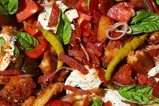 The classic Italian bread salad meets supreme pizza in this end-of-summer mashup, featuring crispy pepperoni and tomatoes.