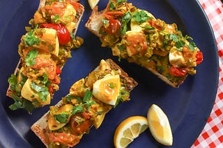 Spiced burst tomato sauce with jammy eggs on toast—yes, please. Plus, let me feed you at my first pop-up on August 3rd!